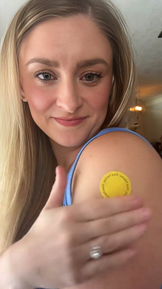 Choose a clean, dry area like your upper arm or shoulder. Press firmly to secure it to your skin.
